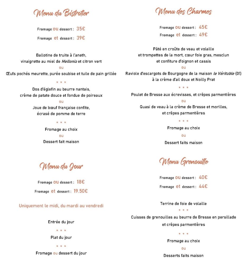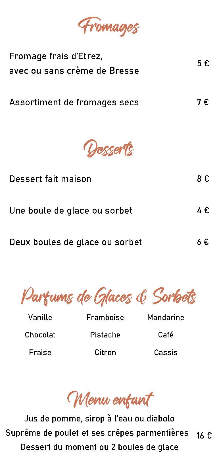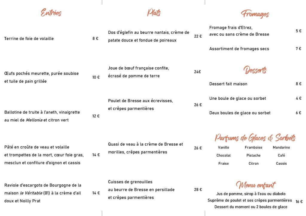 Restaurant traditionnel en Bresse : une cuisine traditionnelle, avec de la volaille de Bresse de chez Cyril Degluaire, Clémence Rolly et Miéral, des grenouilles au beurre de Bresse persillées, les escargots de Bourgogne, une carte de desserts fait maison et tout plein d'autres spécialités du Chef Christophe.