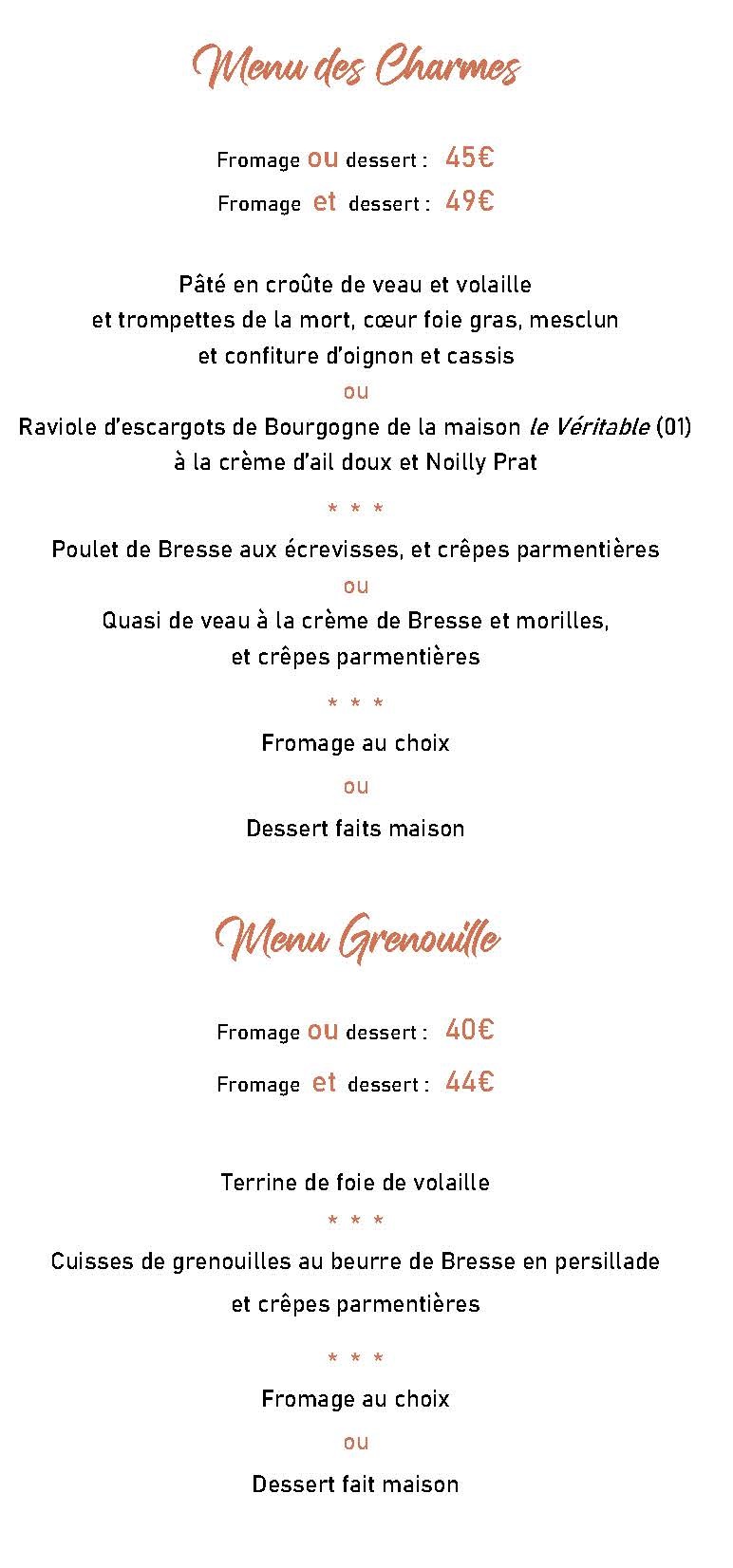Les Charmes de Bresse, restaurant traditionnel à Curtafond © 2022 / Tous droits réservés / Mentions légales